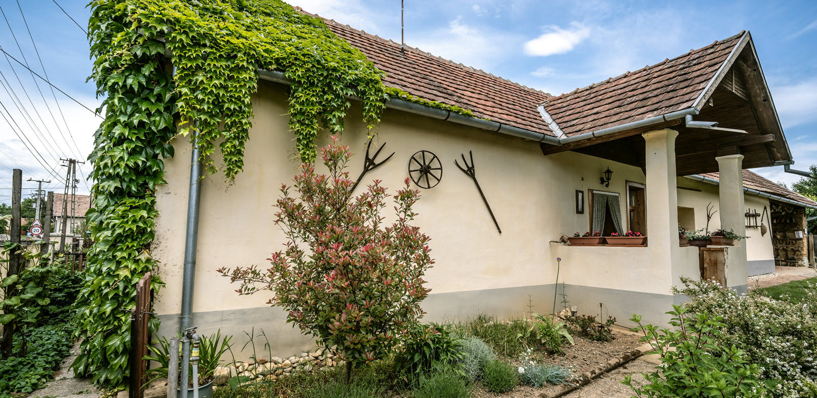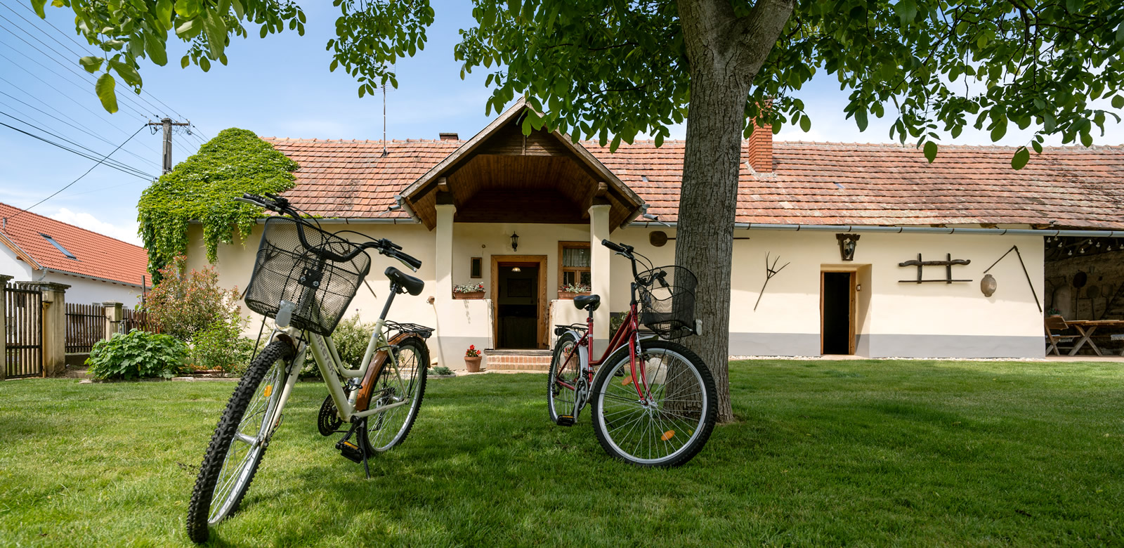 A zárt udvar az autó számára parkolási lehetőséget biztosít. A parkosított udvarból nyíló közösségi tér (a "Barlang") a hűvösebb időszakban ad lehetőséget a hangulatos beszélgetésre, borozgatásra, míg a nyitott oldalú pajta a vendégek kedvenc nyári tartózkodási helye.